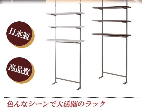 日本製 突っ張り ウォールシェルフ 3段 幅90 ナチュラル 大容量 つっぱり ラック 壁面 突っ張り棚 伸縮 省スペース 木製 キッチン 北欧【送料無料】
