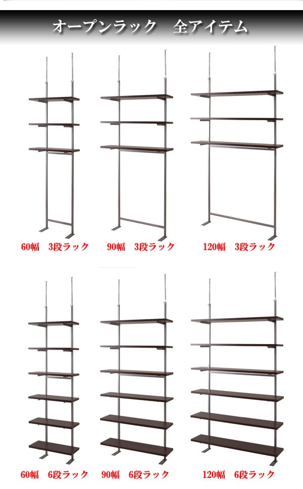■商品について/食卓やデスクの上の空間を有効活用でき、お望みの場所に棚が作れる優れもの!!使い勝手の良いオープンラックは、3段タイプ・6段タイプがあり、幅は3サイズ展開なので様々なシーンに活用できます。