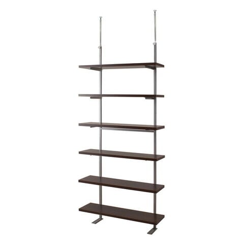 日本製 つっぱり オープンラック 幅90 6段 シェルフ 収納 突っ張り ダークブラウン 伸縮 スリム コンパクト おしゃれ 北欧 スチールラック【送料無料】