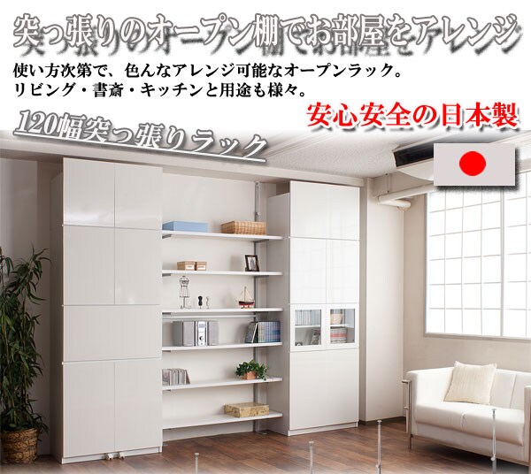 日本製 つっぱり オープンラック 幅120 6段 シェルフ 収納 突っ張り ホワイト 白 伸縮 スリム コンパクト おしゃれ 北欧 スチールラック【送料無料】