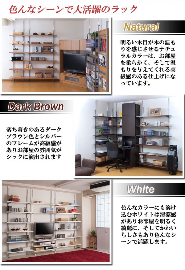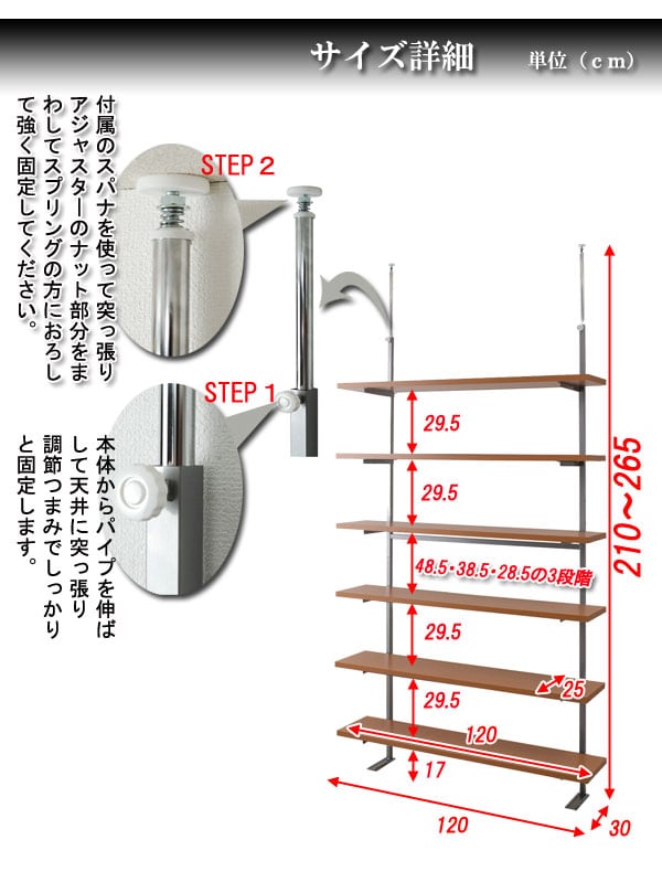 ■商品サイズ/本体:(約)幅120×奥行30×高さ210~265cm、棚板サイズ:(約)幅120×奥行25cm、棚~棚高さ:(約)29.5cm