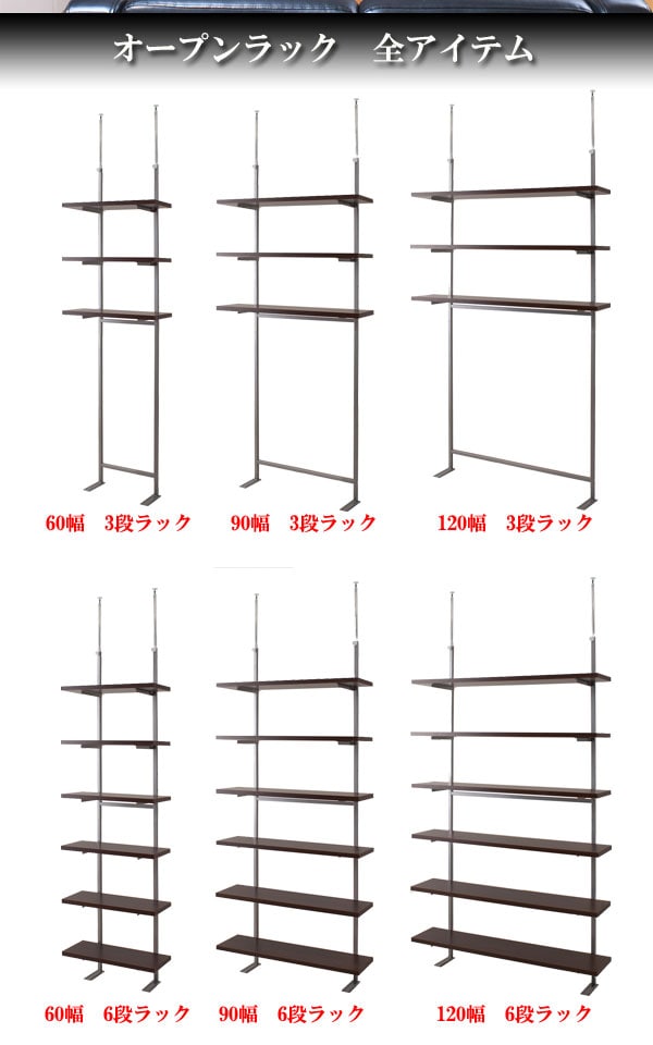 ■商品について/食卓やデスクの上の空間を有効活用でき、お望みの場所に棚が作れる優れもの!!使い勝手の良いオープンラックは、3段タイプ・6段タイプがあり、幅は3サイズ展開なので様々なシーンに活用できます。