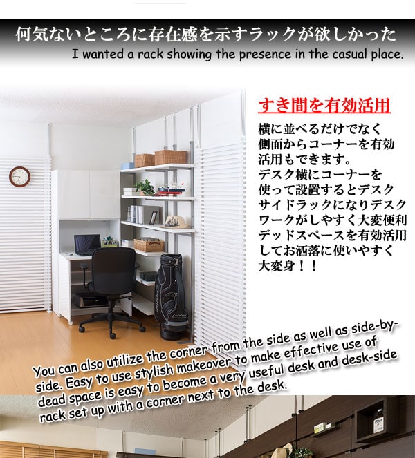コーナーに設置したり壁面いっぱいに並べて壁面収納棚にしたりと自分流のインテリアを楽しんで。
