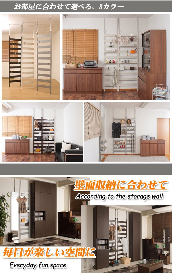 | 本体(アジャスター含む):(約)幅66×奥行4×高さ202~260cm 棚板:(約)幅59.5×奥行7×高さ4cm |