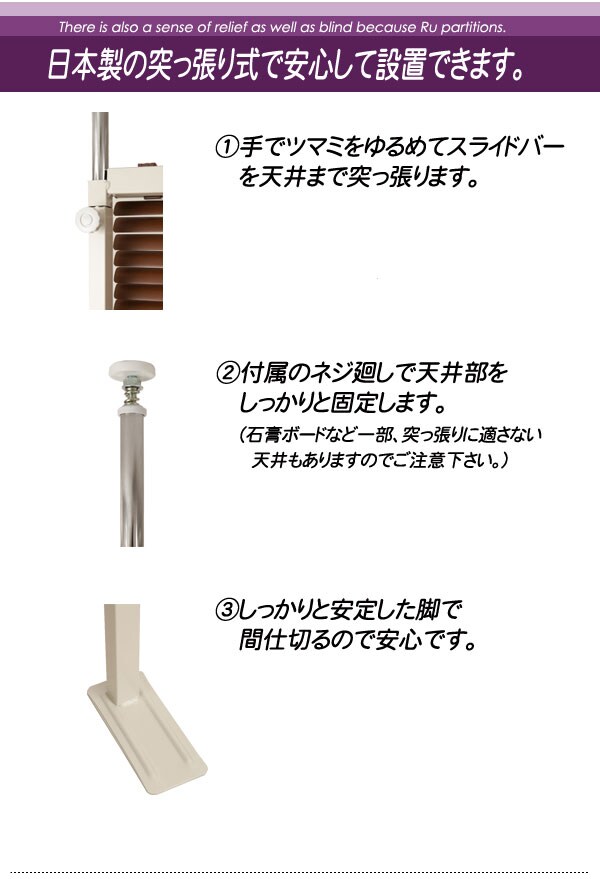 | 間仕切り対応 突っ張り式 薄型省スペース間仕切り設計 商品重量:約7kg 組立式 |