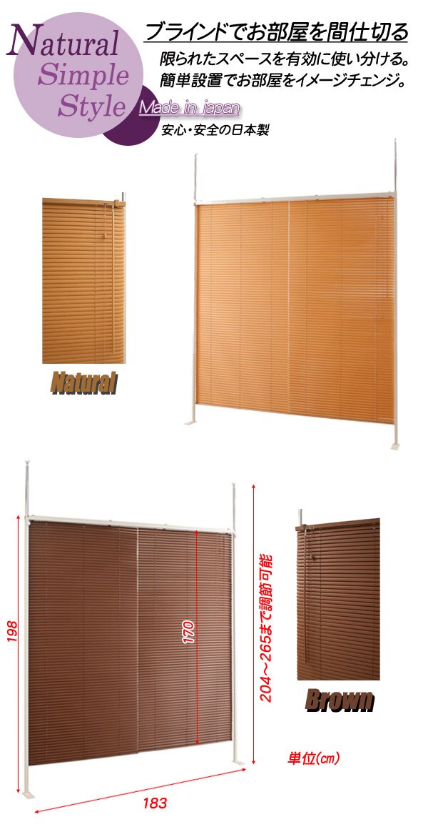 日本製 つっぱり ブラインド パーテーション ダブルタイプ ブラウン 幅183 間仕切り 光調節 地震 転倒防止 北欧 おしゃれ 国産 つっぱり棒 木製【送料無料】