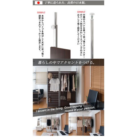 | 突っ張りシリーズにクローゼットハンガーが新登場。収納と間仕切りを組み合わせて、貴方だけのスペースが出来上がる。クローゼットハンガーだけを横並びにセットすればウォークインクローゼットが簡単にできます。またミラータイプやマガジンディスプレイタイプなどシリーズで組み合わせれば本格間仕切り部屋が完成します。ドアカーテンをセットすれば入り口も出来上がり。2サイズ3カラー展開でお部屋に合わせて選べます。 |