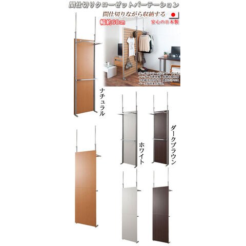 日本製 つっぱり 間仕切り クローゼット パーテーション 幅60 ナチュラル 国産 おしゃれ ワードローブ 衣類収納 国産 ハンガーラック 収納【送料無料】