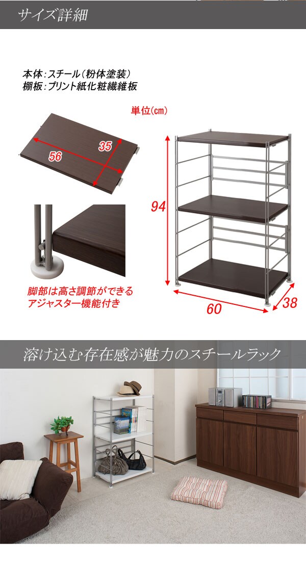 | フレーム:スチール(エポキシ樹脂粉体塗装) 棚板:プリント紙化粧繊維板 |