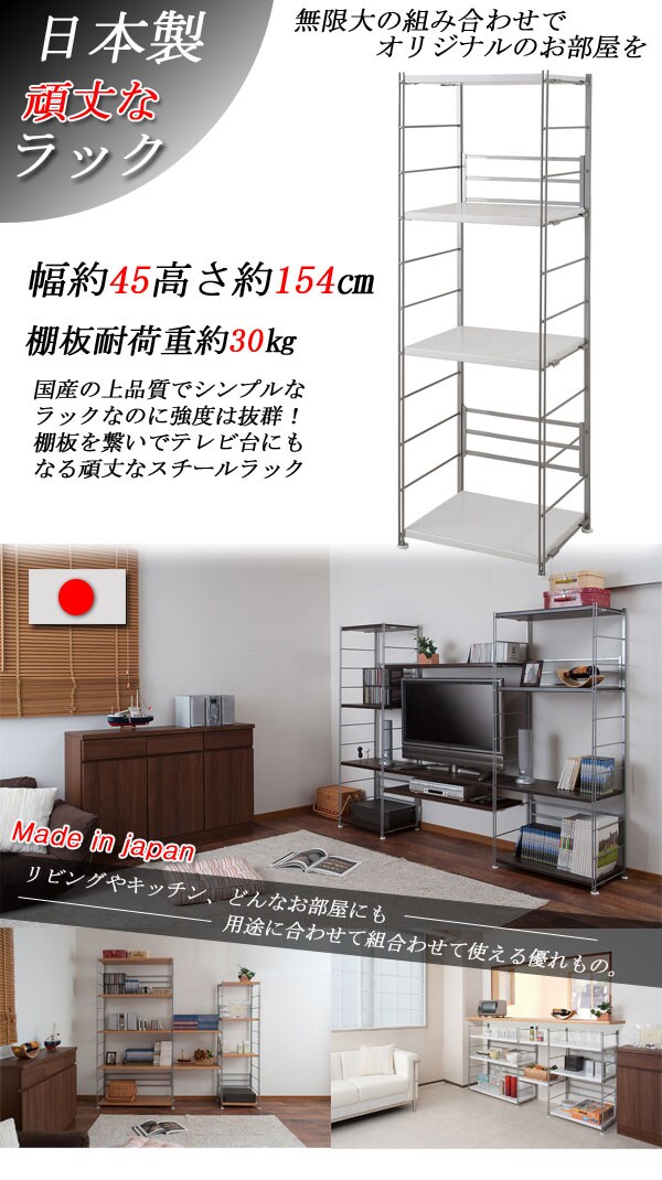 オープンラック 日本製 4段 幅45 高さ154 ステンレス 頑丈棚 四段 ホワイト 白 スチールラック シェルフ おしゃれ モノトーン 国産 北欧【送料無料】
