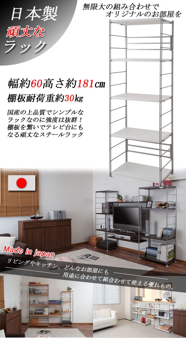 オープンラック 日本製 5段 幅60 高さ181 ステンレス 頑丈棚 五段 ホワイト 白 スチールラック シェルフ おしゃれ モノトーン 国産 北欧【送料無料】