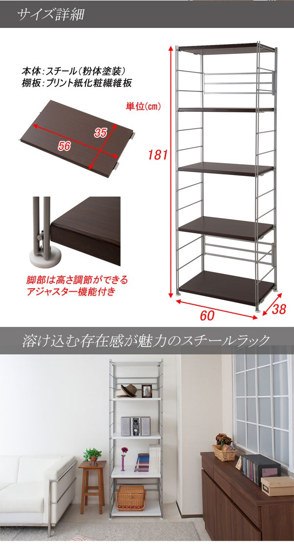 | 本体:(約)幅60×奥行38×高さ181cm 棚板:(約)幅56×奥行35cm |