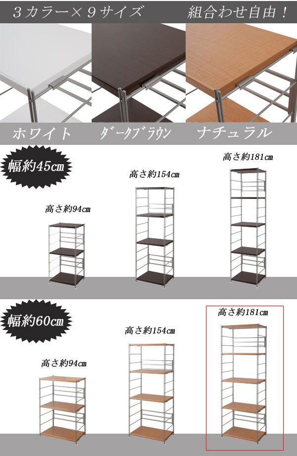 | 本体:(約)幅60×奥行38×高さ181cm 棚板:(約)幅56×奥行35cm |