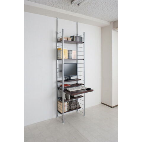 | 突っ張りシリーズにデスクタイプが新登場。使い易く便利なデスクとラックをセッティングして貴方のオリジナルスペースに変身!!デスク天板の高さは2段階に変更できロータイプの座用としても使える高機能デスク。棚板は多段可動仕様で様々なモノの収納に便利です。デスク天板の上に浅棚をモニター台として使えば作業スペースを広くとれ、10間隔で移動できる棚板とトレーで使い勝手抜群!棚板を使って煩雑になりがちなデスク面を賢く活用。別売り棚板を利用すれば更に収納力もアップし、デスク2セットに橋渡しすればオープンラックが完成!携帯電話やデスク周りの小物や、バッグや衣類に帽子など色んな物がチョイ掛けできるラダー式のフレームで、綺麗に格好良く収納できます。 |