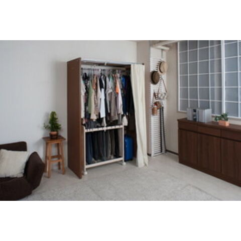 クローゼットがない方・洋服が溢れている方にはもってこいの置き型クローゼットロッカー。伸縮機能付きで部屋に合わせて伸長します。ハンガーの耐荷重量は約24あるのでたっぷりと衣類を収納でき溢れかえった衣類をひとまとめに収納できます。カーテンレールできっちりと閉めることができ、本格的レールで既製カーテンも取り替えできるので、お部屋の雰囲気に合わせてご使用可能です。床の歪みをアジャスターで調整できしっかりと設置できます。じゅうたんなどぐらつきやすい場所での調節ができて大変便利。シリーズバリエーションが幅・カラーともに3タイプと更にたっぷり収納できる上棚付きタイプと様々なシーンに大活躍!