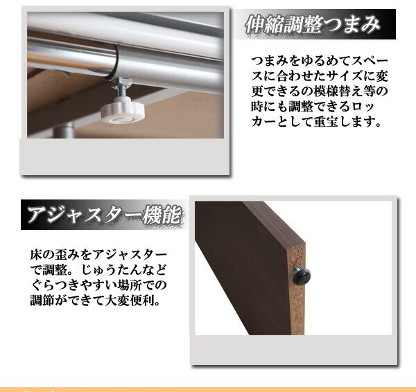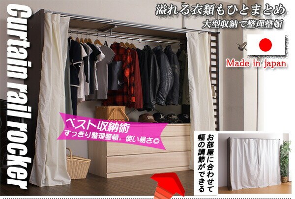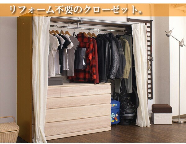 | クローゼットがない方・洋服が溢れている方にはもってこいの置き型クローゼットロッカー。伸縮機能付きで部屋に合わせて伸長します。ハンガーの耐荷重量は約30あるのでたっぷりと衣類を収納でき溢れかえった衣類をひとまとめに収納できます。カーテンレールできっちりと閉めることができ、本格的レールで既製カーテンも取り替えできるので、お部屋の雰囲気に合わせてご使用可能です。床の歪みをアジャスターで調整できしっかりと設置できます。じゅうたんなどぐらつきやすい場所での調節ができて大変便利。シリーズバリエーションが幅・カラーともに3タイプと更にたっぷり収納できる上棚付きタイプと様々なシーンに大活躍! |