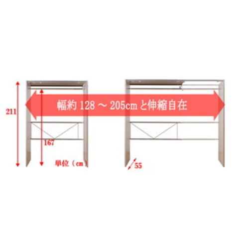 | 本体:(約)幅128~205×奥行55×高さ181cm ハンガー下高さ :(約)167cm |