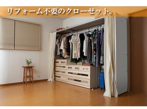 | クローゼットがない方・洋服が溢れている方にはもってこいの置き型クローゼットロッカー。伸縮機能付きで部屋に合わせて伸長します。ハンガーの耐荷重量は約50あるのでたっぷりと衣類を収納でき溢れかえった衣類をひとまとめに収納できます。カーテンレールできっちりと閉めることができ、本格的レールで既製カーテンも取り替えできるので、お部屋の雰囲気に合わせてご使用可能です。床の歪みをアジャスターで調整できしっかりと設置できます。じゅうたんなどぐらつきやすい場所での調節ができて大変便利。シリーズバリエーションが幅・カラーともに3タイプと更にたっぷり収納できる上棚付きタイプと様々なシーンに大活躍! |