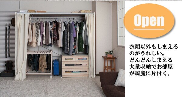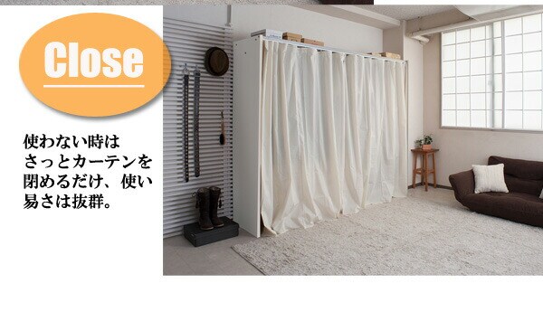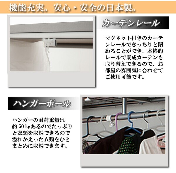 | 耐荷重量/ハンガーバー:約50kg 取外し可能なカーテン付きで既製カーテンに取替え可能 幅サイズは伸縮式で機能的 ※2個口でお届け |