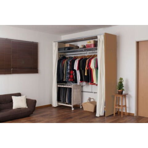 | 耐荷重量/ハンガーバー:約30kg、上棚:約15kg 取外し可能なカーテン付きで既製カーテンに取替え可能 幅サイズは伸縮式で機能的 ※2個口でお届け |