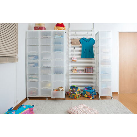| ■商品について | 多段引出し大量収納で収納美人になれるキャスター付きチェストが新登場!コンパクトすきまタイプの引出し7杯から大量収納タイプの引出し30杯までバリエーションがすごい!これさえあれば衣類だけでなくあらゆるものの仕分け収納が可能。フレームは頑丈なスチール製で、安心してお使いいただけます。引出しは丈夫で軽量なポリプロピレンを採用。衣替えなど引出しの入替えも楽にでき、頑丈なストッパー付きキャスターで移動も楽々!引出し前面はクリアなホワイト色と中身の見えないブラウン色の2色展開でシリーズで揃えて引出しの入替えで2トーン色にもできるオリジナリティ溢れる多段大量収納チェストをどうぞ。 | ■商品の仕様 | ストッパー付きキャスター付きで移動も楽々 | ■商品サイズ | 本体:(約)幅36×奥行48×高さ144cm 引出し内寸:(約)幅28×奥行43×深さ17.5cm | ■この商品について | 組立式 | ■配送について | ●こちらの商品は配送日時の指定ができかねます。あらかじめご了承下さい。 ●北海道・沖縄・その他離島は別途お見積もりになります。 ●エレベーター、階段、玄関、廊下の幅や高さによっては、搬入が困難な場合もございますので事前に搬入経路をご確認お願い致します。その為別途ケースによりまして費用が発生する場合がございますのでその点は予めご了承ください。 |