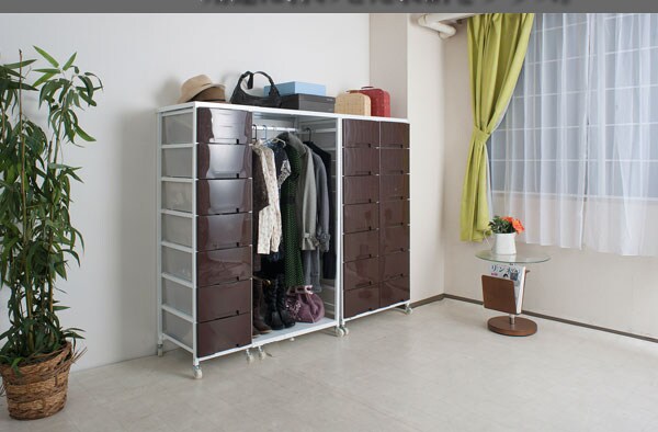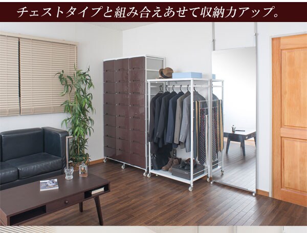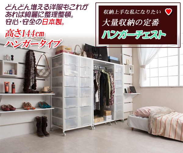 ハンガー付きプラスチックチェストシリーズ ハンガータイプ 高さ144cm チェスト 機能的 ハンガー収納 省スペースラック キャスター ワードローブ【送料無料】