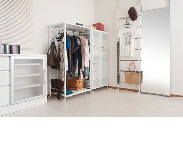 ハンガー付きプラスチックチェストシリーズ ハンガータイプ 高さ144cm チェスト 機能的 ハンガー収納 省スペースラック キャスター ワードローブ【送料無料】のレビュー