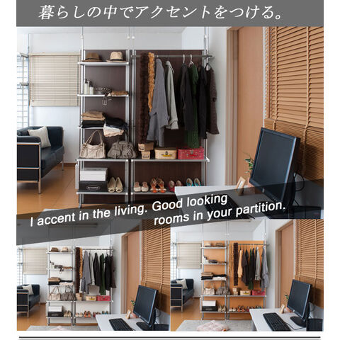 ■商品について/省スペースで圧迫感なく使用できる好評の間仕切りクローゼットパーテーションに収納に便利な棚2段付きが新登場。収納と間仕切りを組み合わせて、貴方だけのスペースが出来上がる。クローゼットハンガーだけを横並びにセットすればウォークインクローゼットが簡単にできます。またミラータイプやマガジンディスプレイタイプなどシリーズで組み合わせれば本格間仕切り部屋が完成します。ドアカーテンをセットすれば入り口も出来上がり。