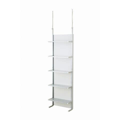 突っ張り間仕切り棚収納ラック5段 幅60cm ホワイト色 つっぱり 薄型 ラダー 壁面収納 リフォーム DIY ウォールディスプレイ 壁面ラック お洒落 オープンラック【送料無料】