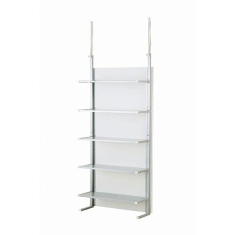 突っ張り間仕切り棚収納ラック5段 幅90cm ホワイト色 つっぱり 薄型 ラダー 壁面収納 リフォーム DIY ウォールディスプレイ 壁面ラック お洒落 オープンラック【送料無料】