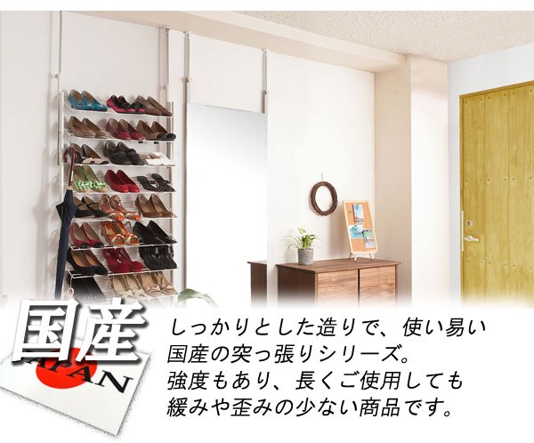 日本製 つっぱり 幅53 壁面 収納 シューズラック 国産 つっぱりラック シェルフ 大容量 スリム おしゃれ オープンラック 白 北欧 コンパクト【送料無料】