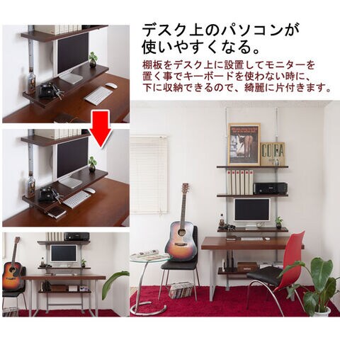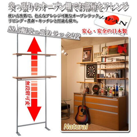 日本製 つっぱり ラック ダークブラウン 幅89.5 二段 2段 高さ調節 収納 国産 オープンラック シェルフ 棚 収納棚 おしゃれ つっぱり棚 北欧【送料無料】