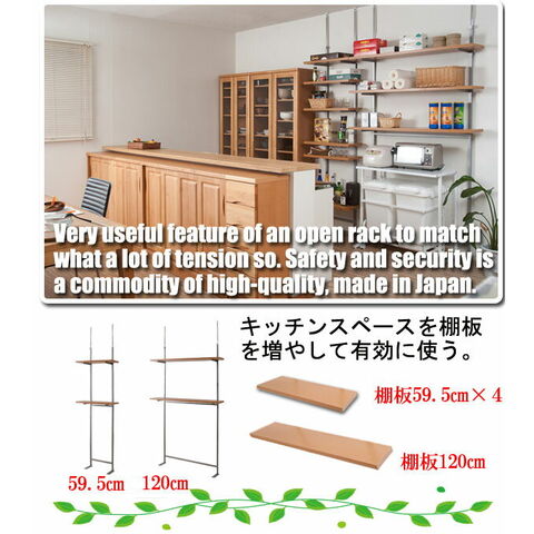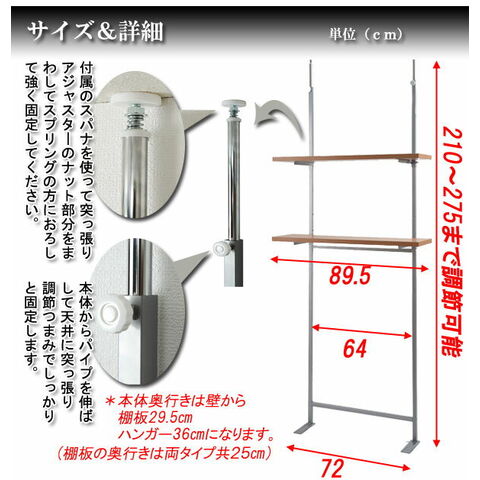 ■商品サイズ/本体:(約)幅59.5×奥行29×高さ210~275cm、棚板:(約)幅59.5×奥行25cm