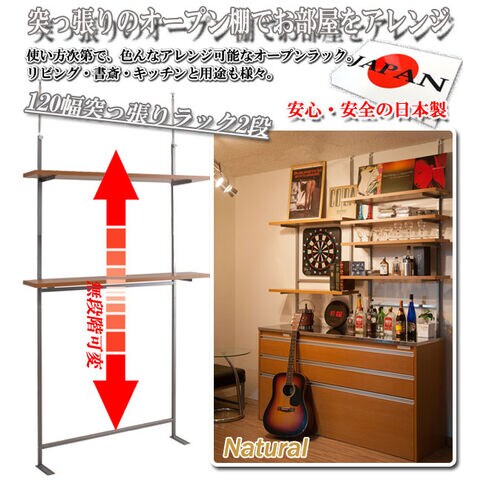 日本製 つっぱり ラック ホワイト 幅120 二段 2段 高さ調節 収納 国産 オープンラック シェルフ 棚 収納棚 おしゃれ 白 つっぱり棚【送料無料】
