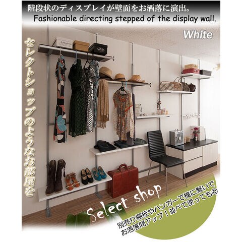 ■商品について/無段階に棚板の位置を調節できる突っ張りウォールシェルフが新たに登場!前回とは違い棚板の位置を無段階に調節できるから自分の丁度いい高さにすることができます!キッチンで食器や保存食を、リビングで雑誌やDVDを、ランドリーではバスタオルのストックや洗剤を置いたり。