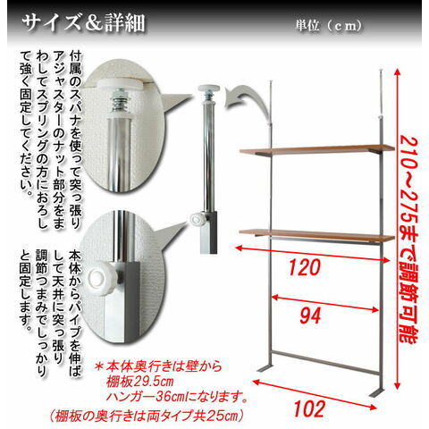■商品サイズ/本体:(約)幅59.5×奥行29×高さ210~275cm、棚板:(約)幅59.5×奥行25cm