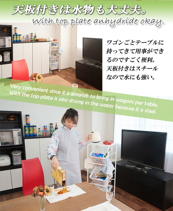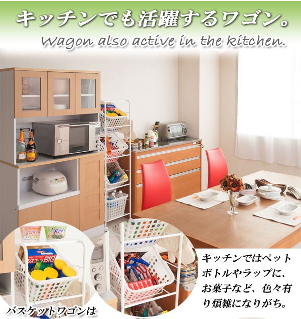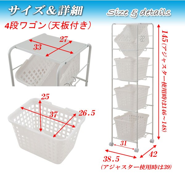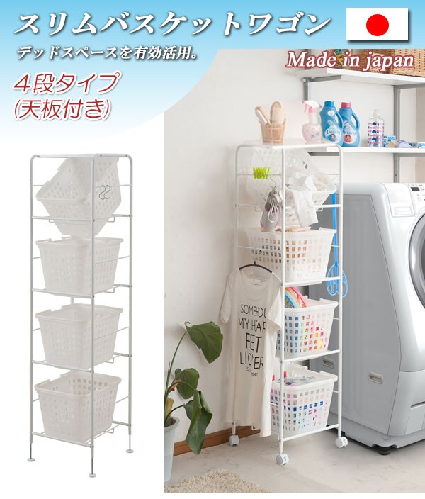 キャスター付きバスケットワゴン 4段天板付き ホワイト 脱衣所 収納 キャスター付 バスケット付 日本製【送料無料】