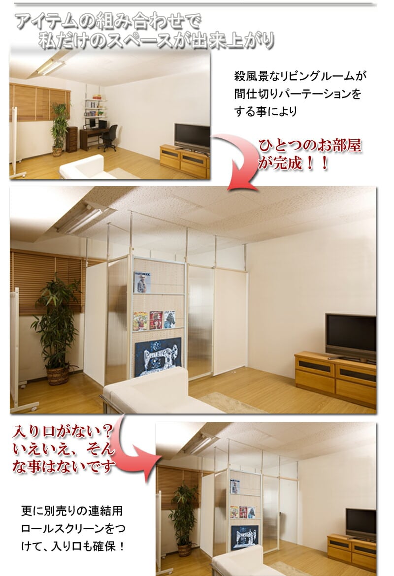 ■商品について/パーテーションを設置するだけで簡単にお部屋を間仕切る事ができます。