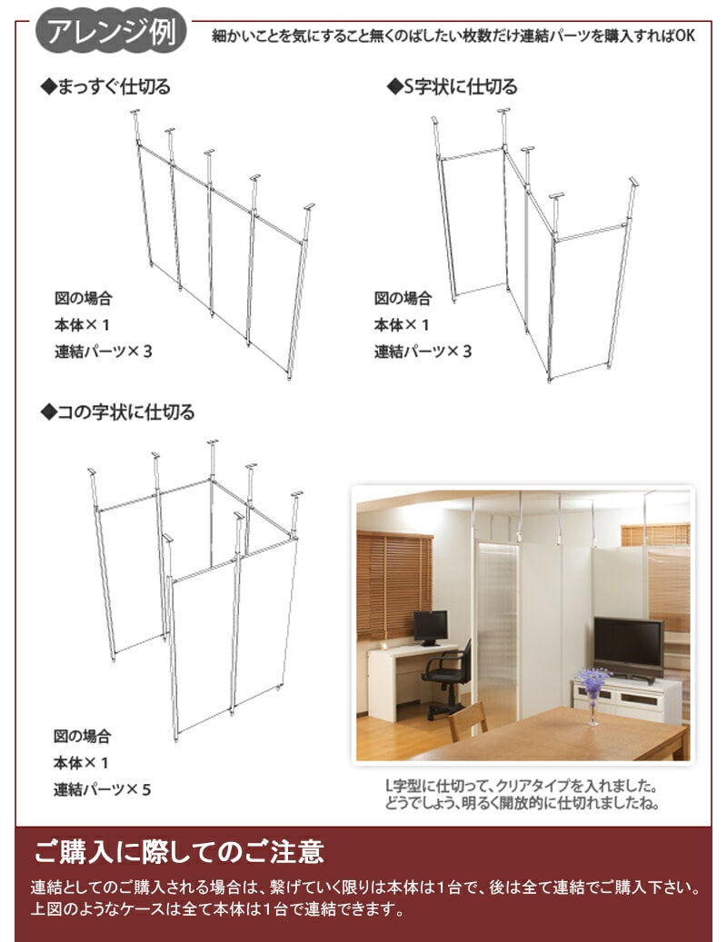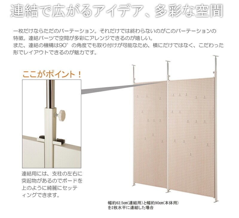 別売りの連結用ボードとの連結アレンジ次第で間仕切りパターンは無限大。