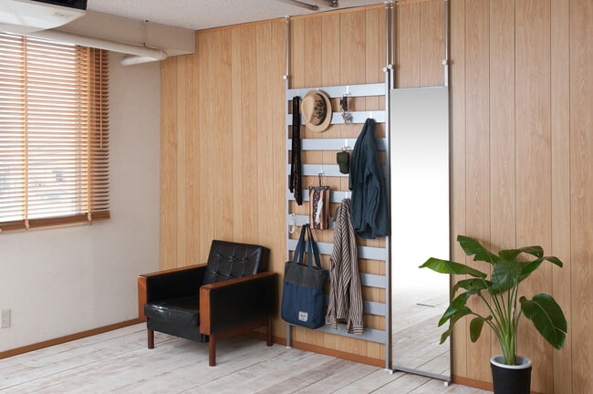 日本製 壁面 つっぱり ラダーラック オープンラック 幅86 突っ張り パーテーション 収納 スリム コンパクト おしゃれ シルバー 北欧 国産【送料無料】