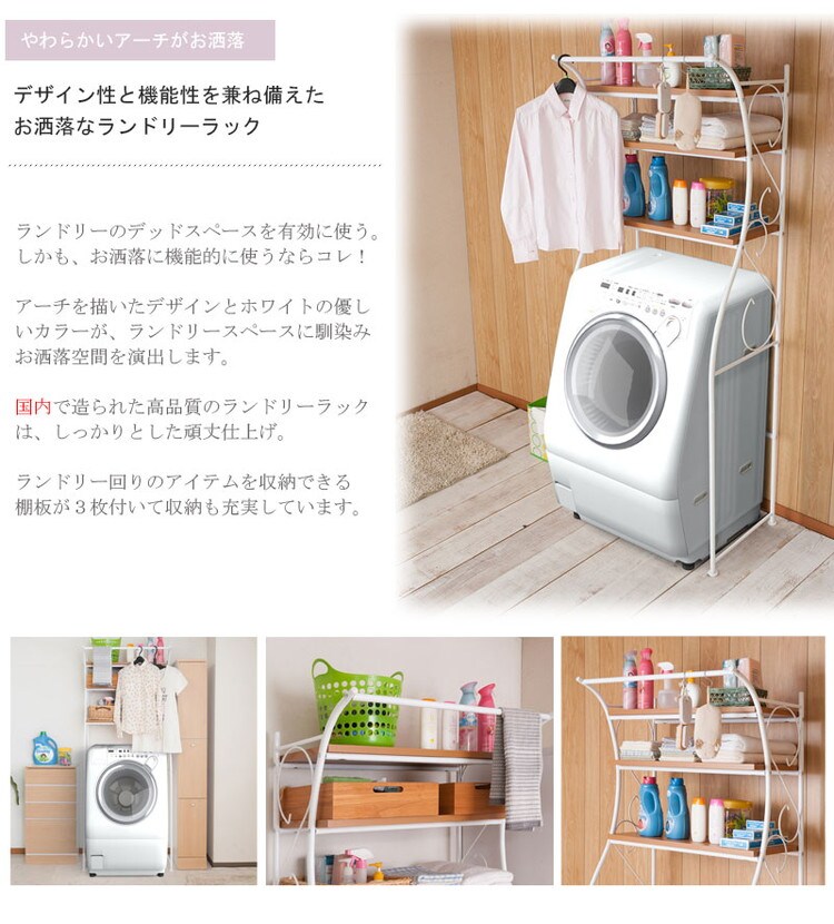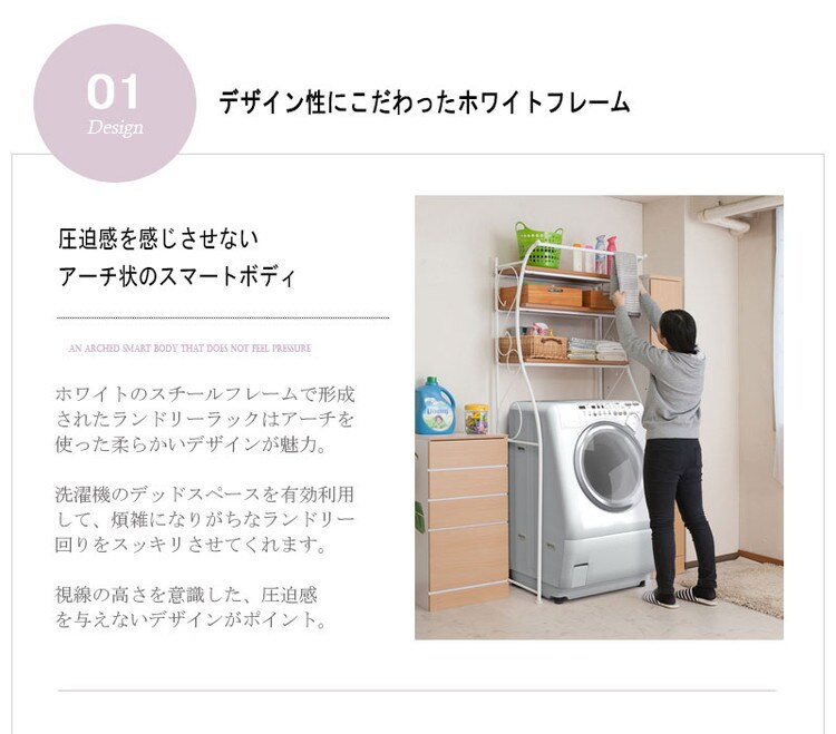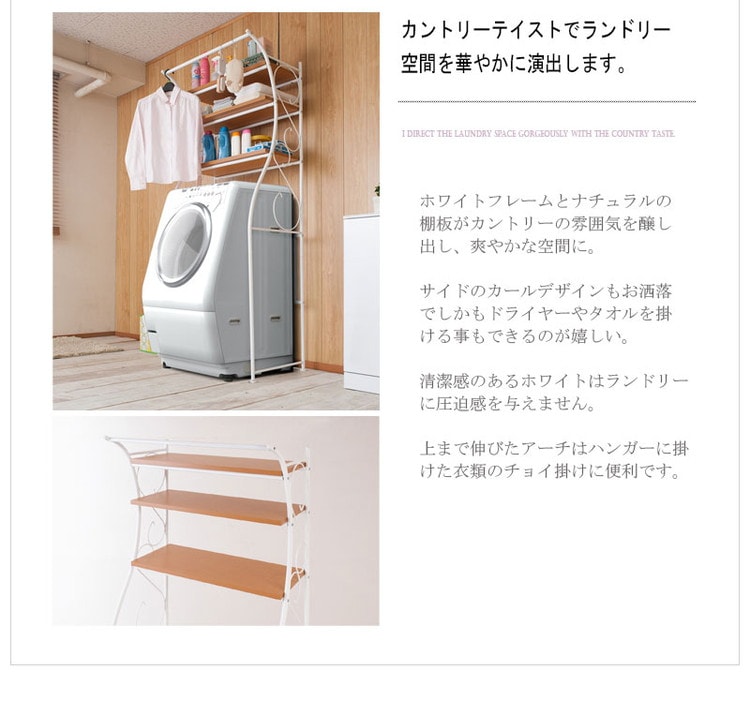アーチを描いたデザインとホワイトの優しいカラーが、ランドリースペースに馴染みお洒落空間を演出します。