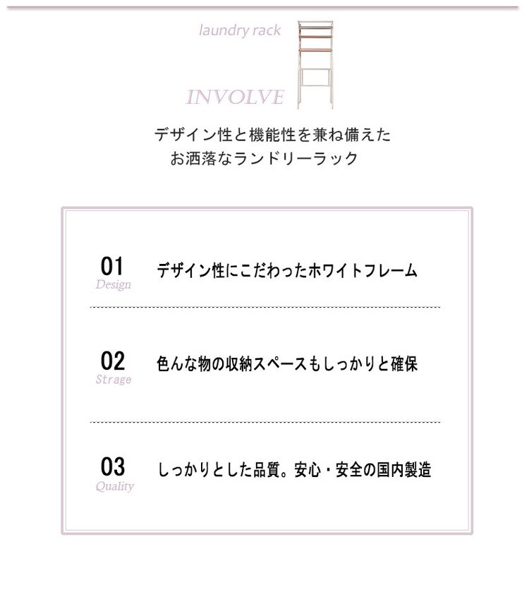 国内で造られた高品質のランドリーラックは、しっかりとした頑丈仕上げ。
