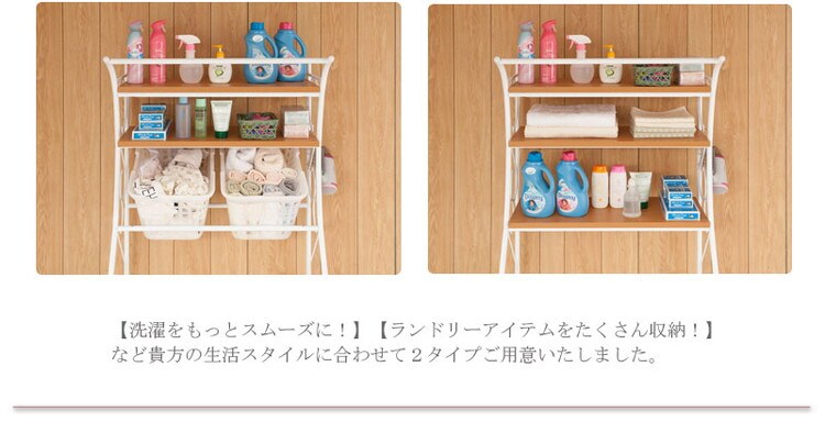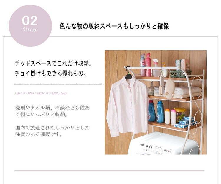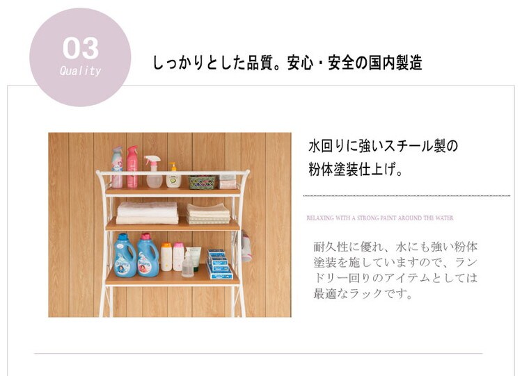 ランドリー回りのアイテムを収納できる棚板が3枚付いて収納も充実しています。