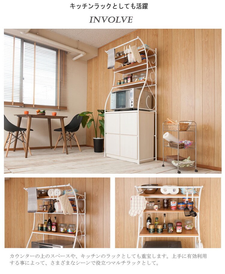 また、カウンターの上のスペースや、キッチンのラックとしても重宝します。上手に有効利用する事によって、さまざまなシーンで役立つマルチラックとして。