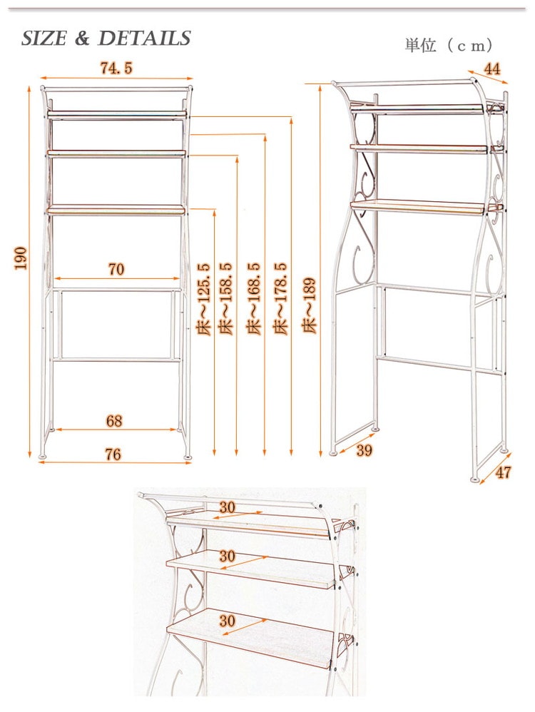 ■商品サイズ/本体:(約)幅76×奥行47×高さ190cm、棚板:幅70×奥行30cm
