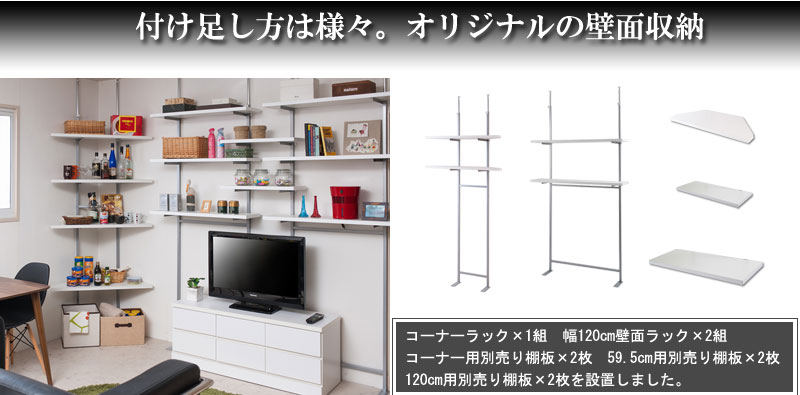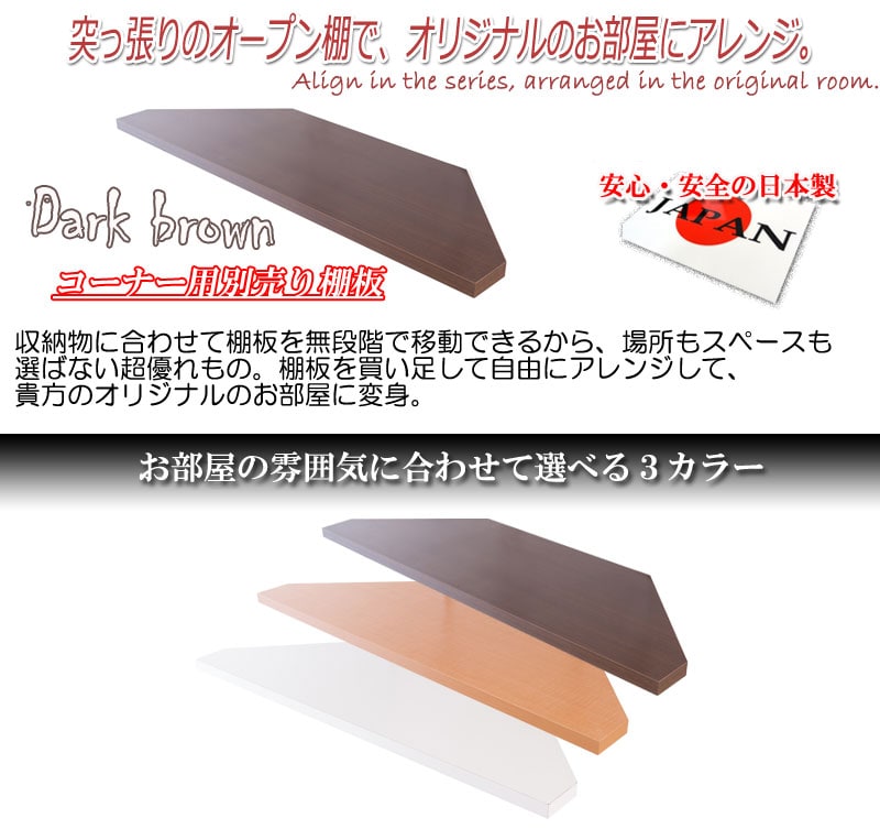 突っ張り壁面収納 無段階調整コーナー用オープンラック別売り棚板 ブラウン つっぱり式 突っ張り 簡単設置 店舗 業務用 コーナー【送料無料】