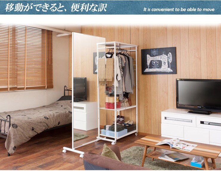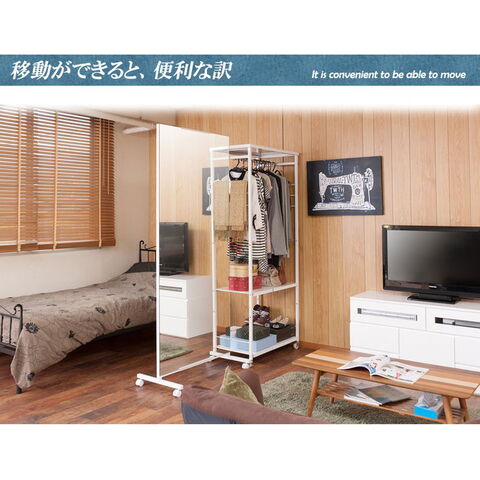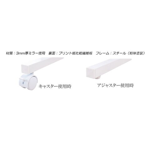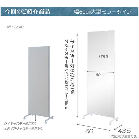■商品サイズ/本体:(約)幅60×奥行3(脚部43.5)×高さ(キャスター時189、アジャスター時184.5~185.5)cm、ミラー高さ:(約)178.5cm