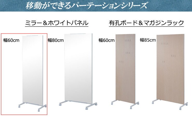 日本製 幅60cm キャスター付き パーテーション 衝立 ついたて 国産 間仕切り 大型ミラー 鏡 仕切り 会議室 オフィス 事務所【送料無料】