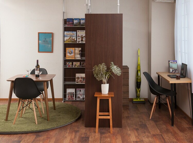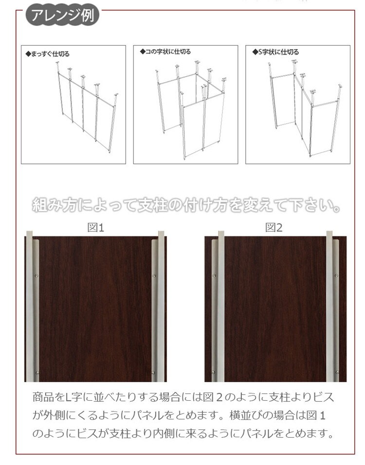収納も何も必要のない間仕切りのみが必要な方や同シリーズを組み合わせて使用でパーテーションの完成。ドアカーテンをセットすれば入り口も出来上がり。