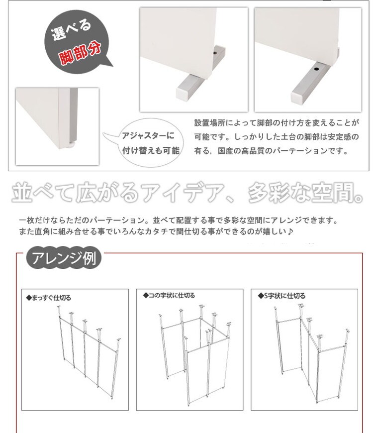 収納も何も必要のない間仕切りのみが必要な方や同シリーズを組み合わせて使用でパーテーションの完成。ドアカーテンをセットすれば入り口も出来上がり。